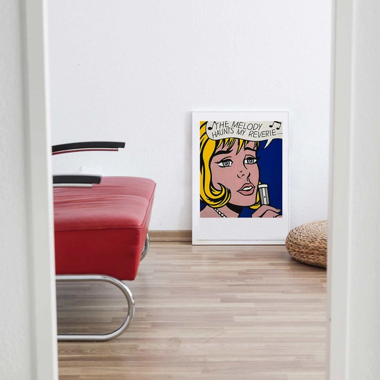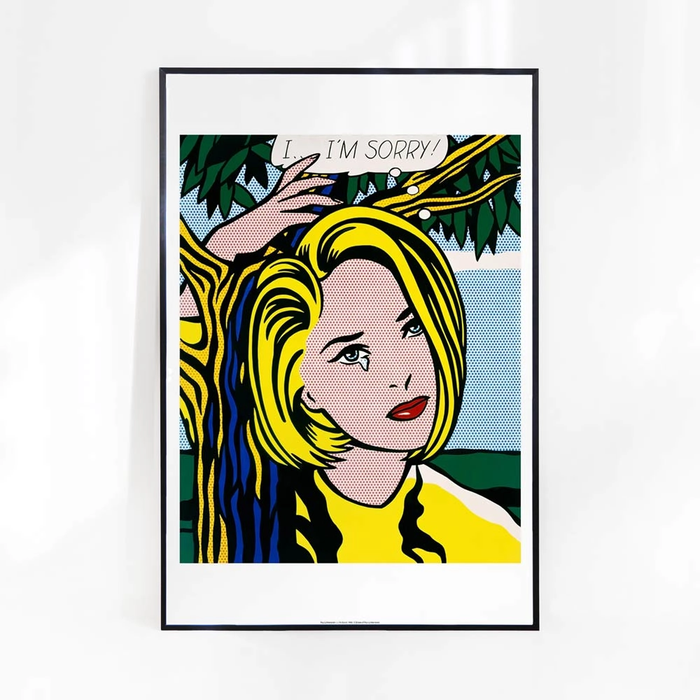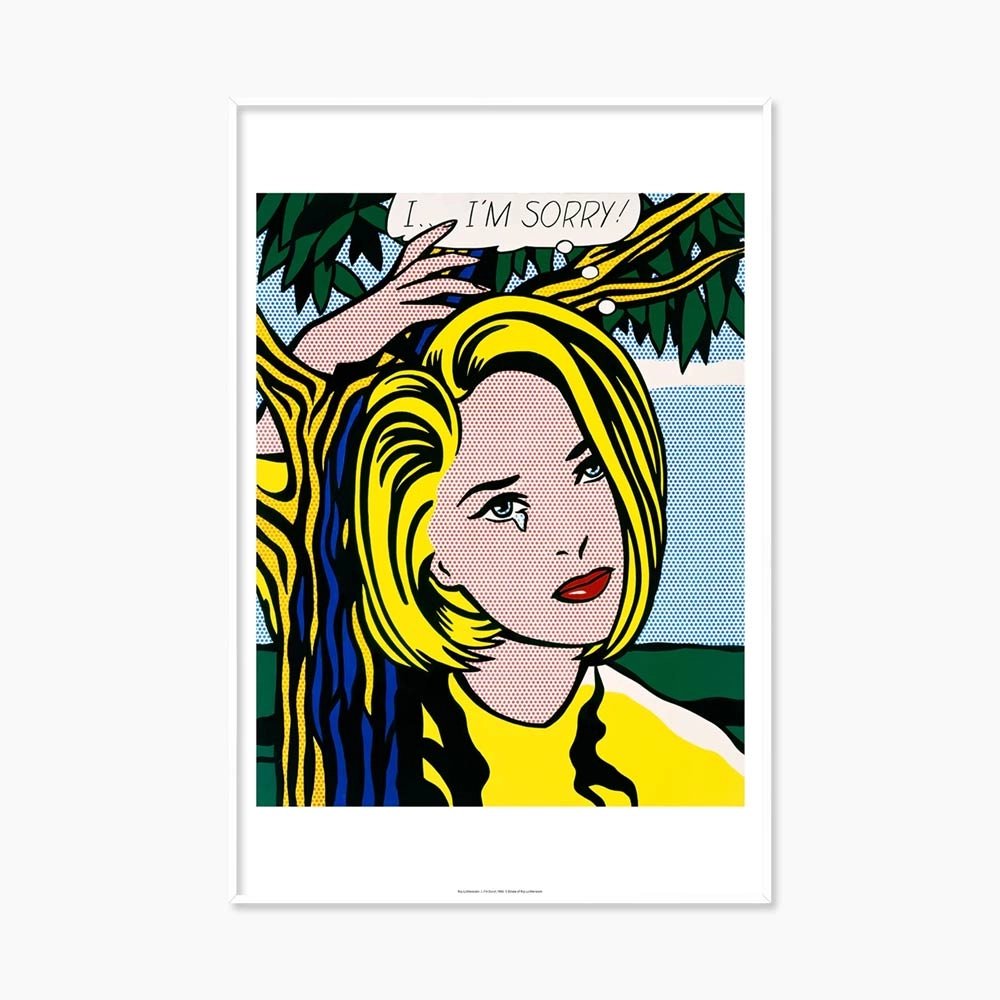 로이 리히텐슈타인(Roy Lichtenstein,1923~1997)의 1965-6년 작품인 ‘I...I'm Sorry!’를 원작에 가깝게 복원하여 초고화질로 발행한 아트포스터다. 원작은 캔버스에 유채와 마그나를 사용하여 만든 작품으로, 현대 여성을 상징하는 ‘Eve’를 그린 초상화다.