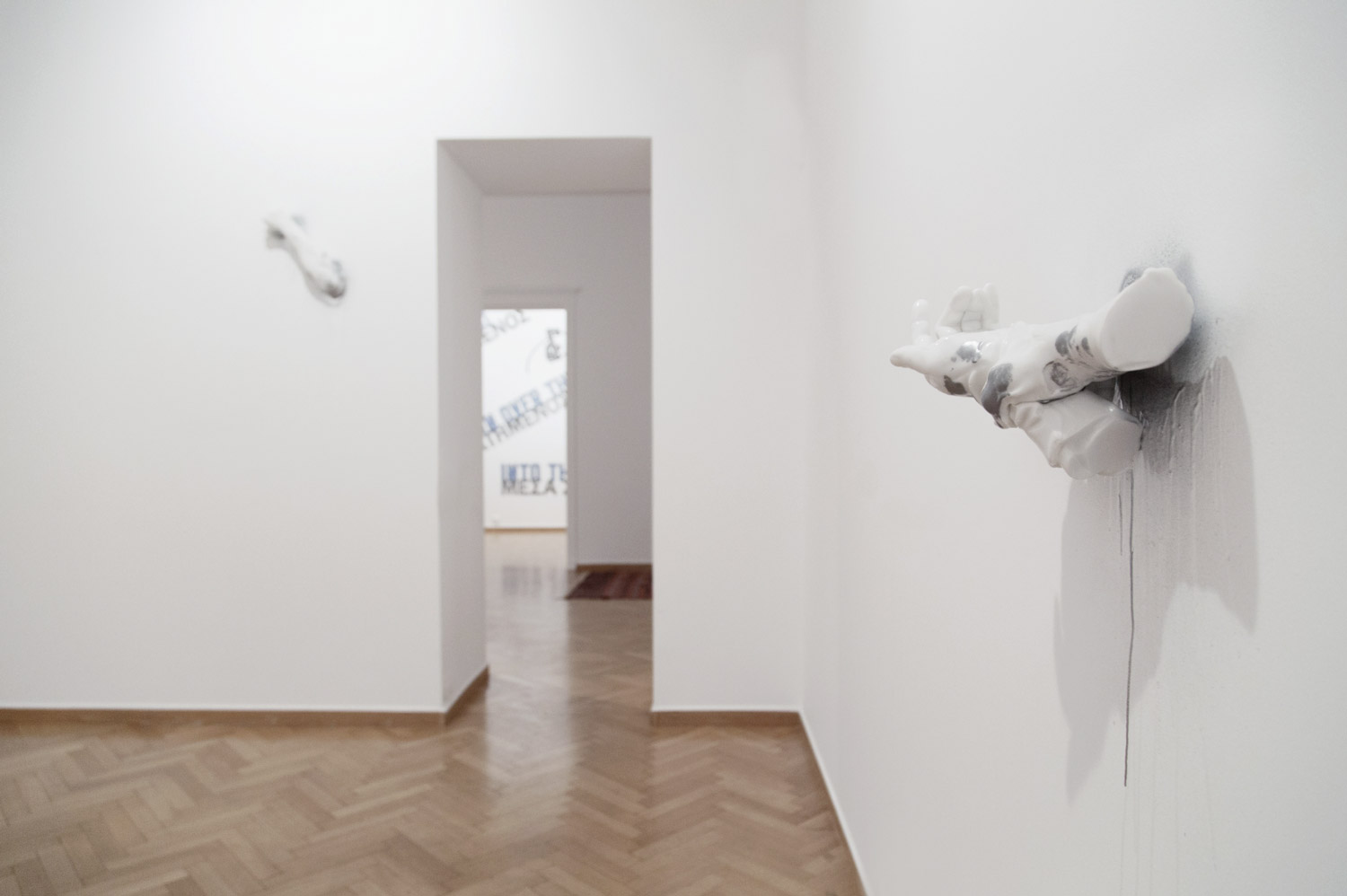 Installation view. Artwork, foreground: © Studio lost but found/VG Bild-Kunst, Bonn 2017, background: © 2017 Lawrence Weiner/ARS, New York/OSDEETE, Greece