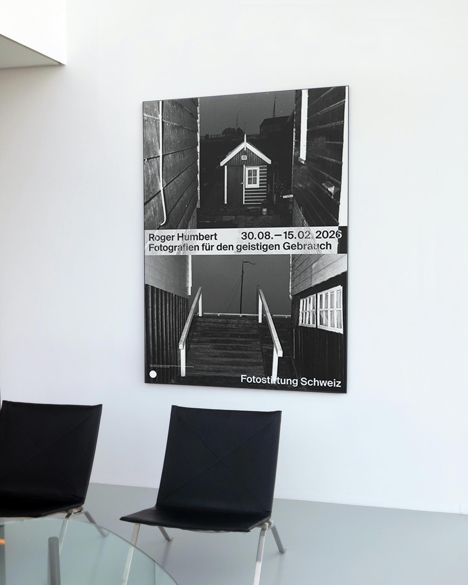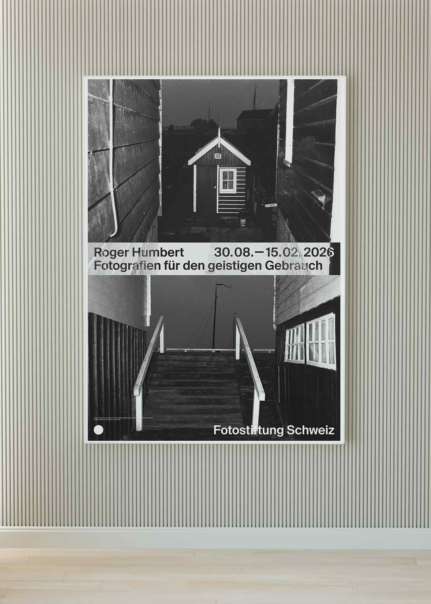 스위스 빈터투어에 자리한 스위스 사진 재단 ‘Fotostiftung Schweiz’에서 2025년에 열린 로저 움베르(Roger Humbert, 1929~2022)의 전시 ‘Roger Humbert – Fotografien für den geistigen Gebrauch’를 기념하며 발행한 전시 포스터로, 그의 1968년 작품 ‘Insel Marken’을 모티프로 디자인되었다.