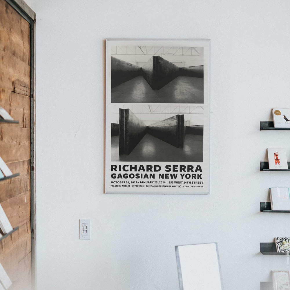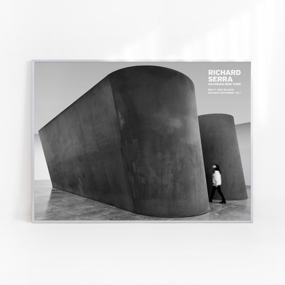미국의 미니멀리즘 조각가로 리처드 세라(Richard Serra, 1938~ )의 2015년 작품 ‘NJ-1’을 담은 포스터로, 2016년 가고시안 뉴욕에서 열린 그의 전시 ‘Richard Serra: NJ-1’를 기념하며 발행되었다.
