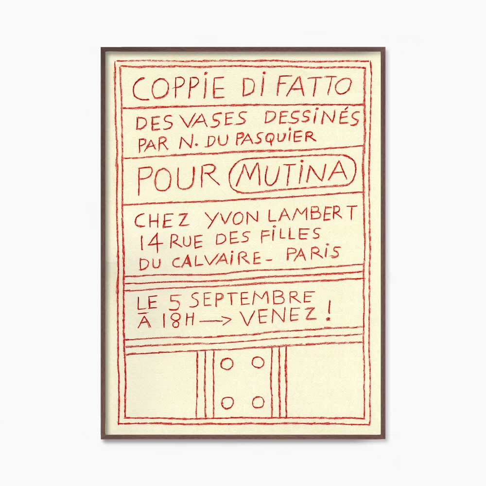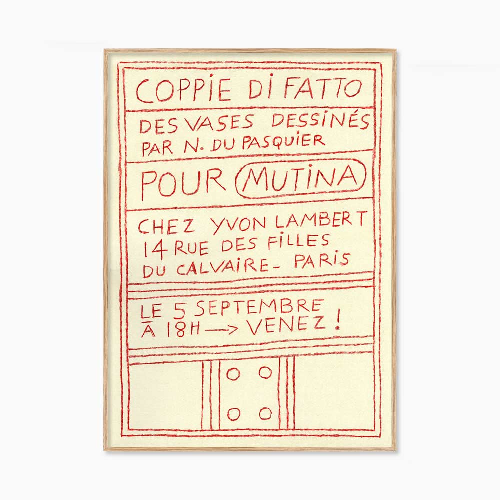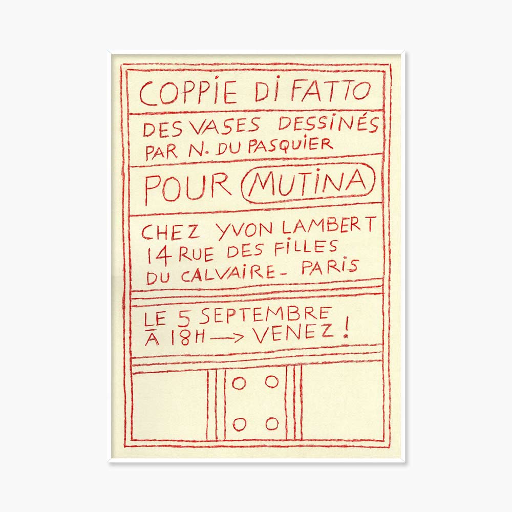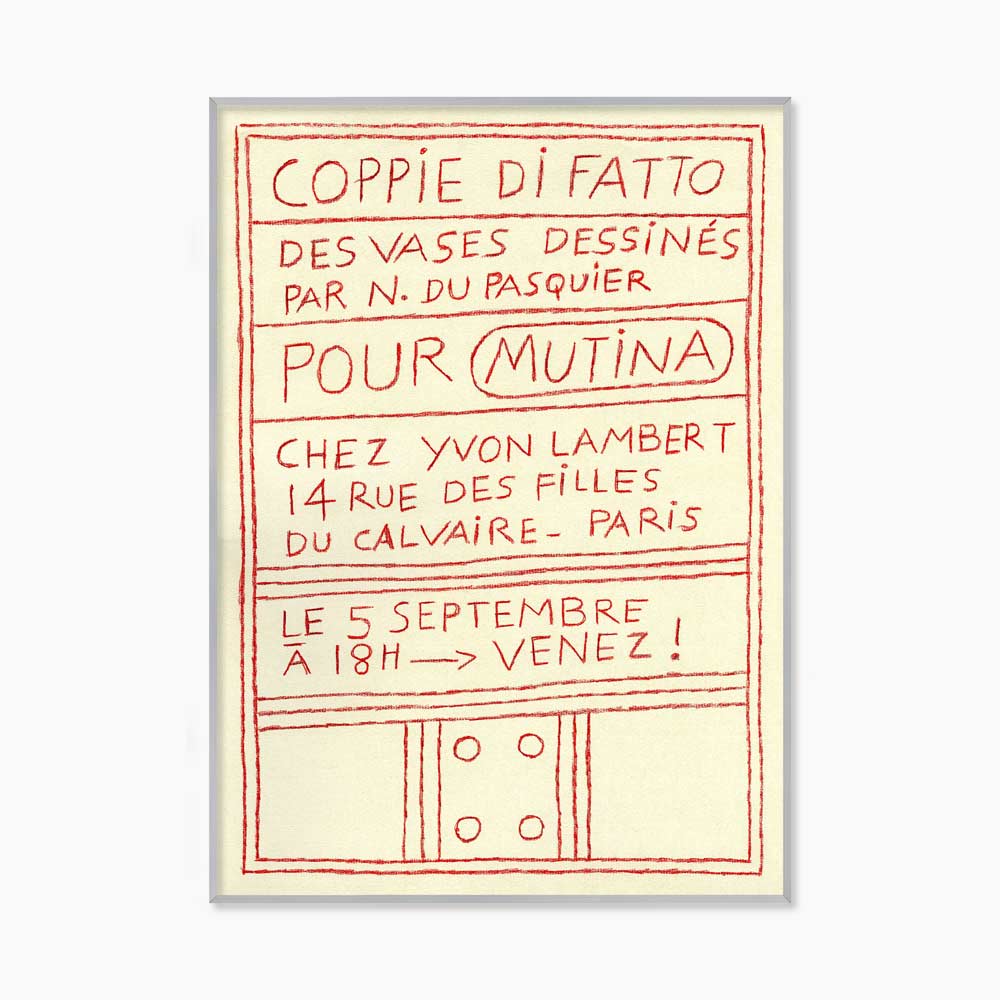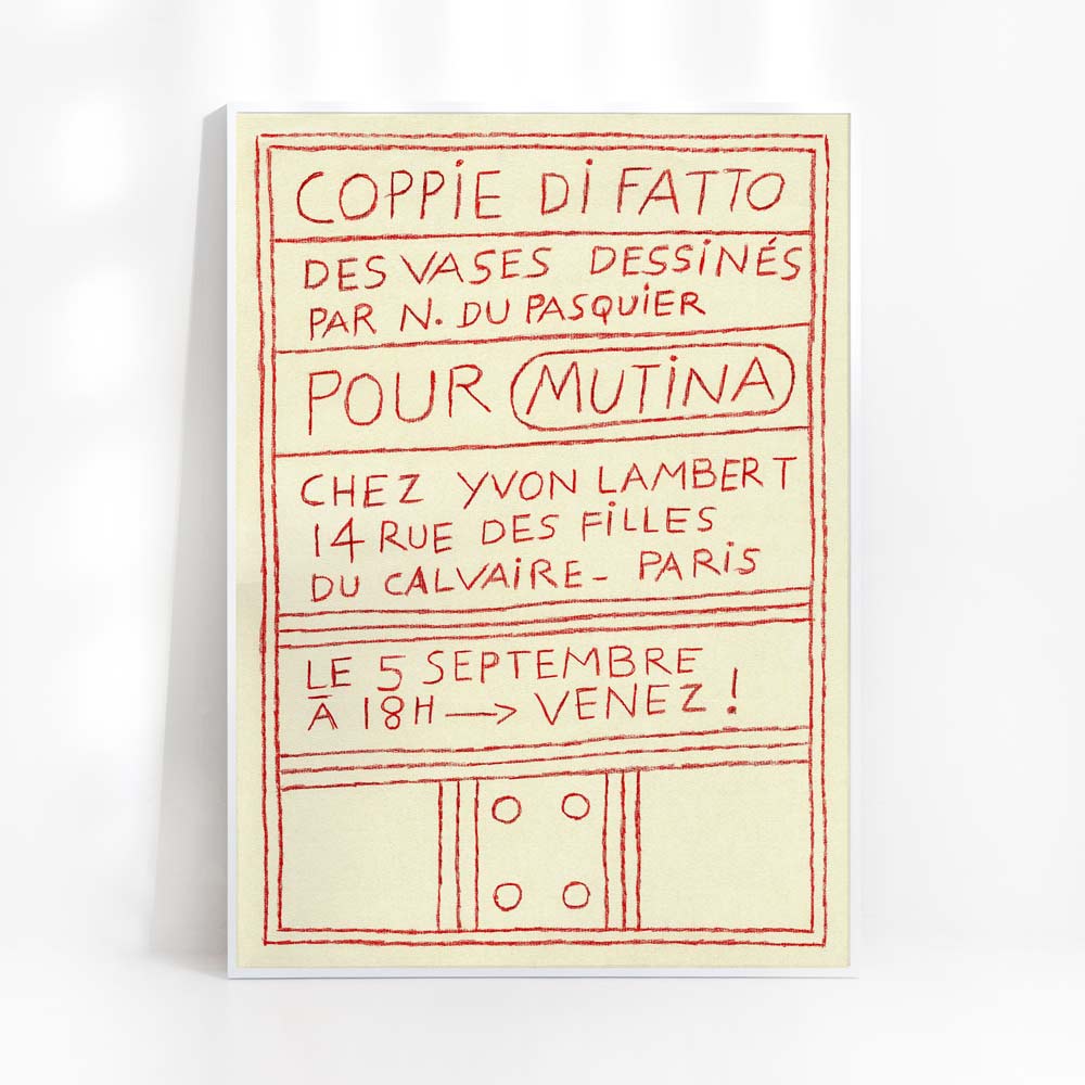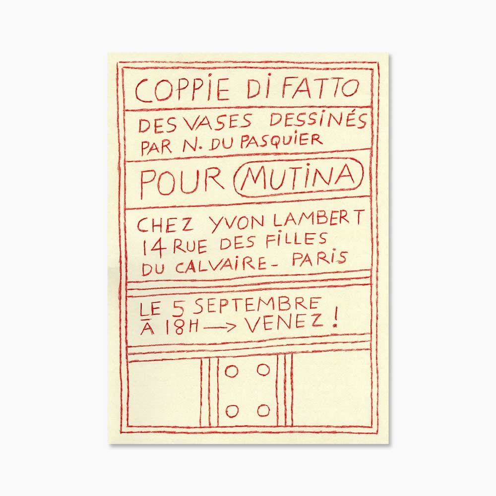 프랑스 파리 이봉 랑베르(Yvon Lambert)에서 2025년 열린 나탈리 뒤 파스퀴에(Nathalie Du Pasquier, 1957~ )의 전시 ‘Coppie di Fatto’를 기념하며 발행한 전시 포스터다.
