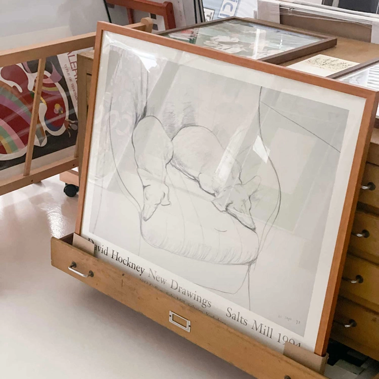- 액자 상판에 포스터를 붙이는 배접 작업을 진행하며, 후면은 수평을 용이하게 도와줄 와이어를 설치합니다.
