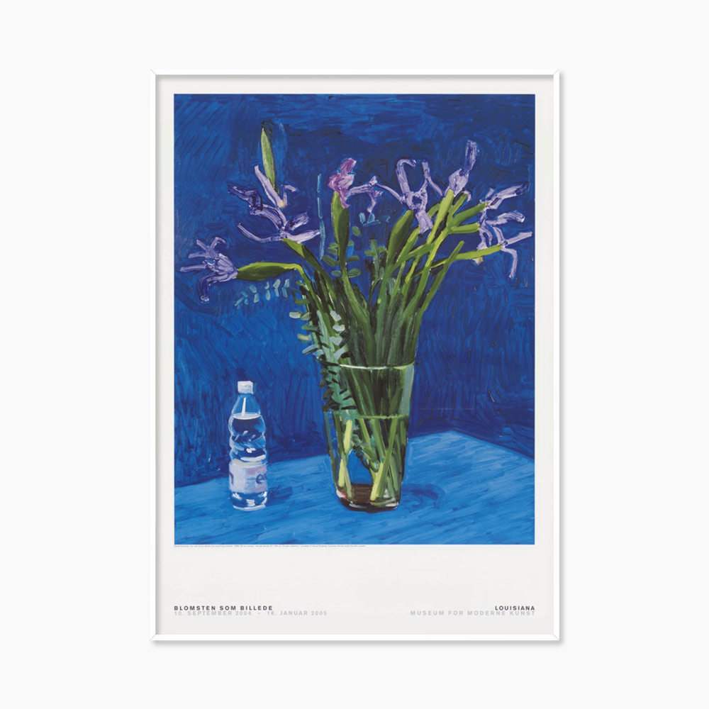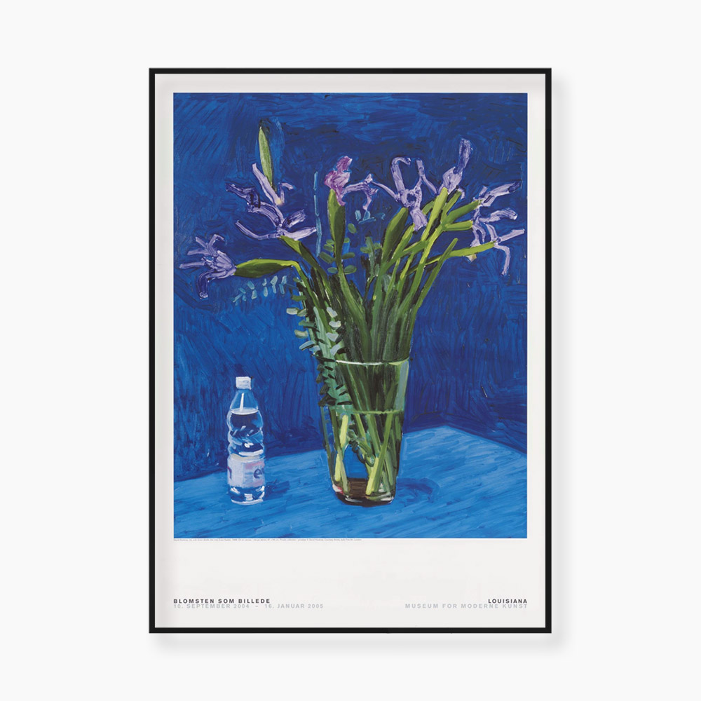 2004년 루이지애나 미술관에서 열린 데이비드 호크니(David Hockney, 1937~)의 전시 ‘The Flower as a Picture’를 기념하여 발행한 전시포스터로, 호크니의 1998년 작품인 ‘Iris With Evian Bottle’을 모티프로 디자인되었다.