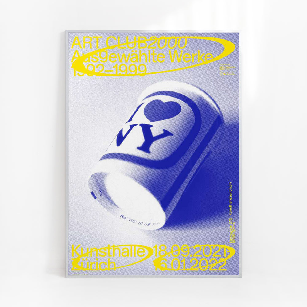 스위스 취리히에 자리한 현대미술관 ‘Kunsthalle Zürich’에서 2021년 개최한 ART CLUB2000의 전시 ‘Selected Works 1992-1999’를 기념하여 발행한 그래픽디자인의 전시 포스터다.
