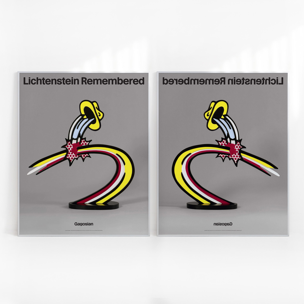 양면 포스터는 ‘Coup de Chapeau I’의 앞면과 뒷면을 모두 묘사하며 리히텐슈타인의 조각 접근 방식의 기본인 2차원과 3차원 사이의 긴장감을 표현하고 있다.