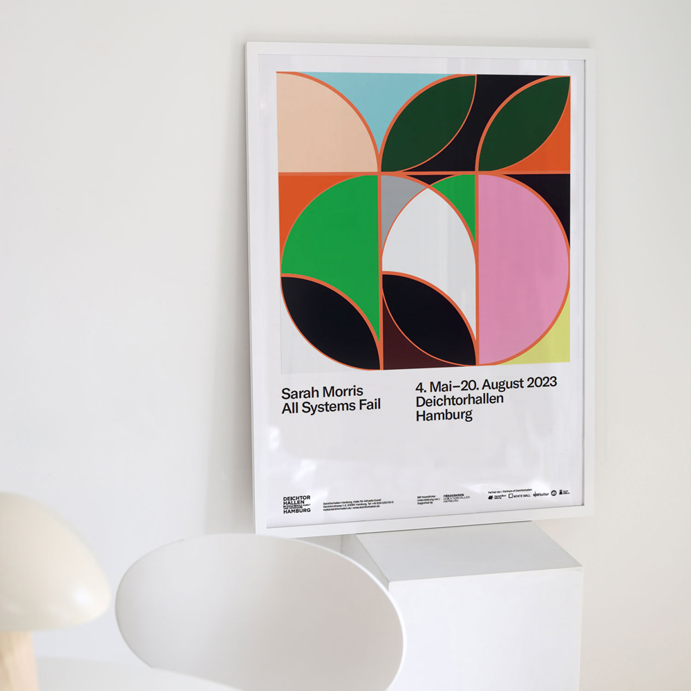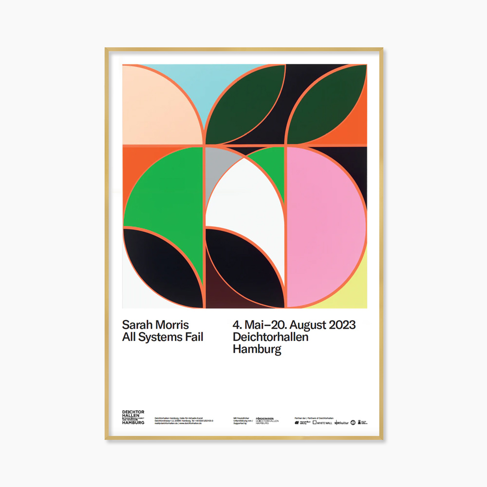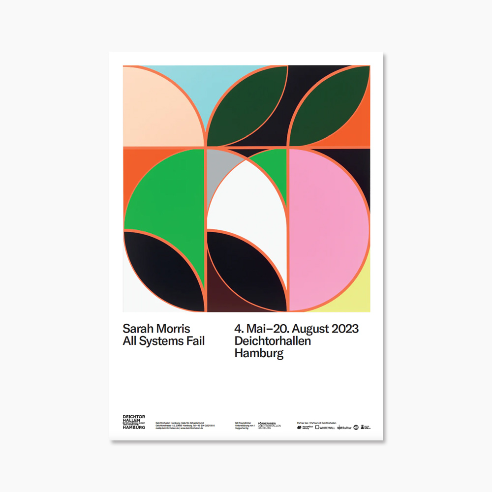 2023년 독일 함부르크의 ‘Deichtorhallen Hamburg’에서 개최한 사라 모리스(Sarah Morris, 1967~ )의 전시 ‘All Systems Fail’를 기념하며 발행한 포스터로, 작가의 2013년 작품 ‘Telebrás [Rio]’를 모티프로 디자인되었다.